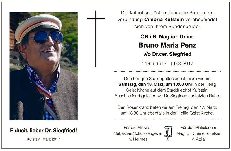Trauerfeierlichkeiten für Mag. Dr. Bruno M. Penz v/o Dr.cer.Siegfried †